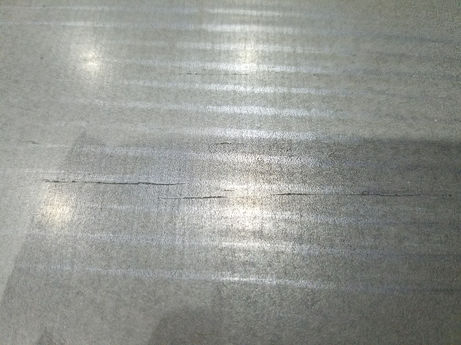 A thin, jagged crack parallel to the rolling direction. Caster folds are usually created by uneven cooling during casting.